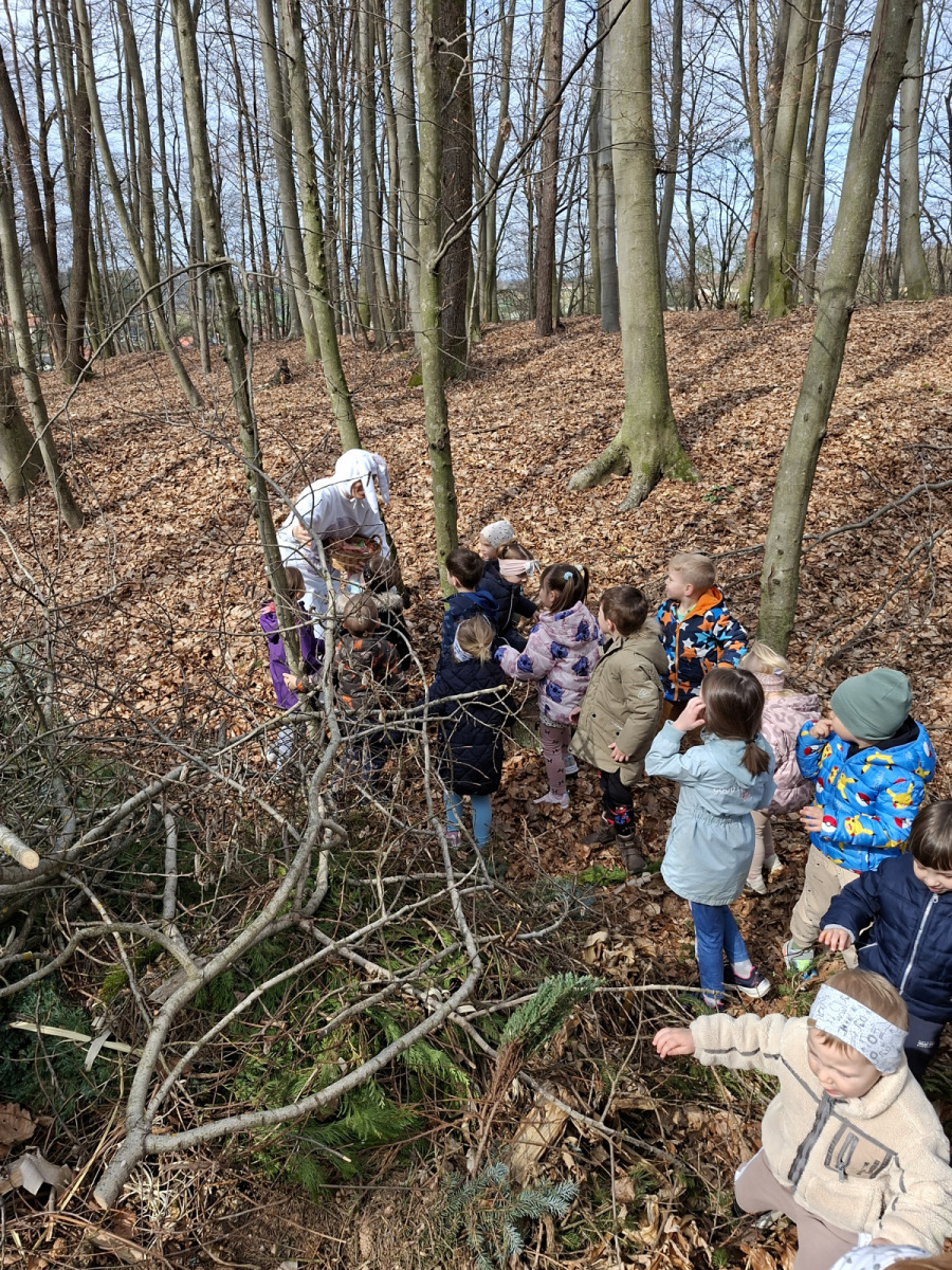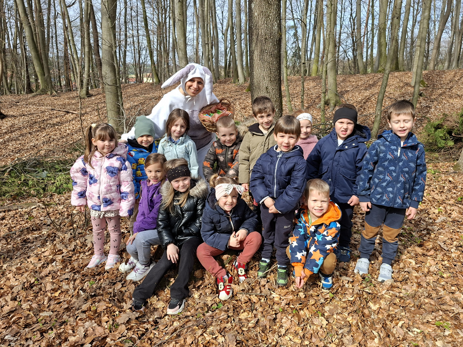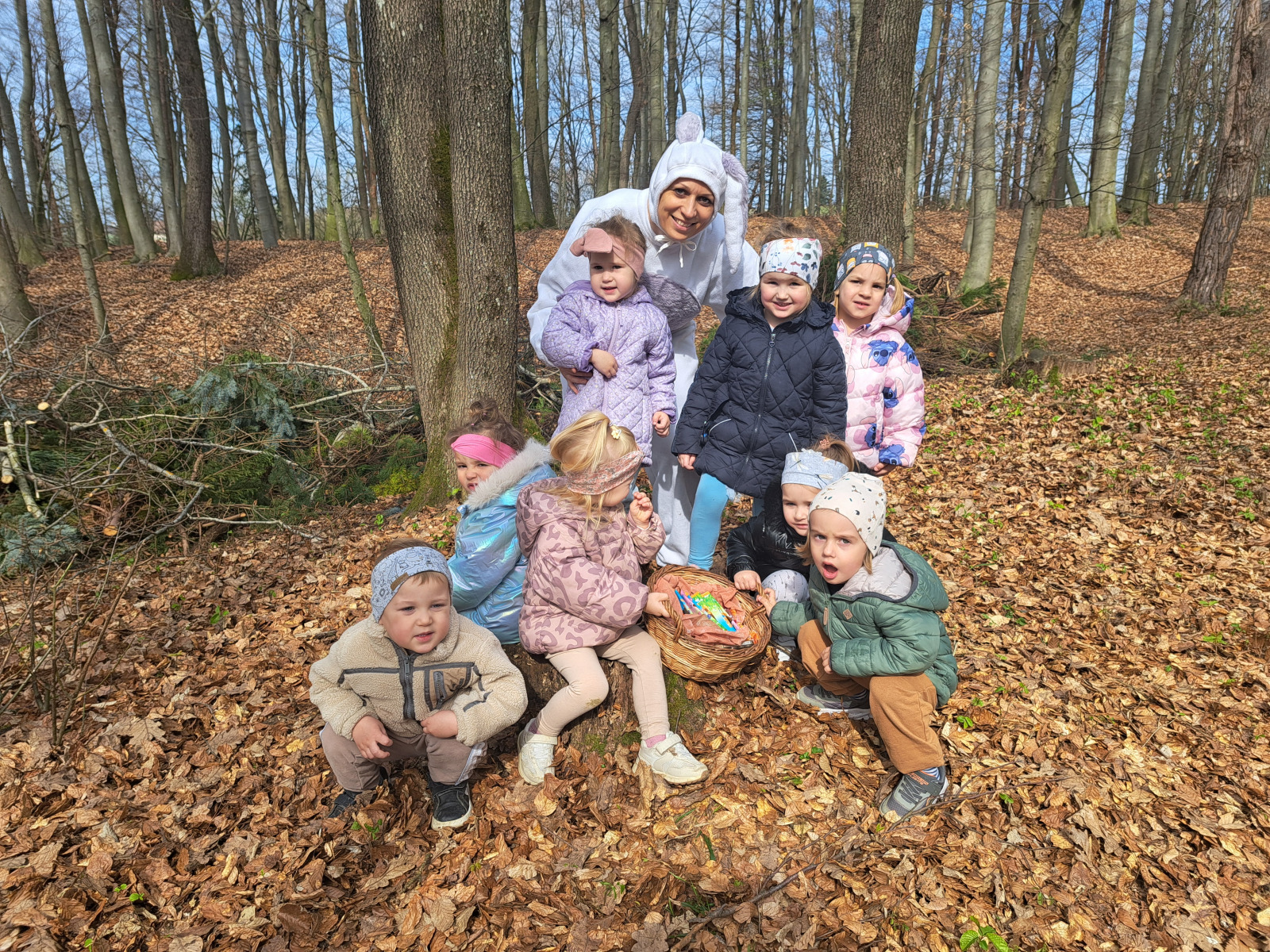 Petek, 3. aprila, se je za skupini Palčki in Lunice začel zelo zanimivo, saj nas je v igralnici pričakalo skrivnostno pismo velikonočnega zajčka. Povabil nas je na skupni razburljiv lov do sladkega presenečenja v gozdu, kjer je otrokom pripravil gibalne in zanimive naloge, povezane z naravo in naravnimi materiali, ki jih gozd ponuja. Ob raziskovanju so otroci skozi igro spoznavali koliko možnosti nam gozd ponuja za gibanje, igro, sodelovanje in razvijanje domišljije. Vsaka naloga nas je vodila bližje cilju, zadnja pa nas je pripeljala naravnost do zajčka s sladkim presenečenjem, ki je na otroške obraze pričaral iskrene nasmehe.